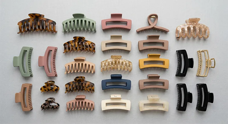 Wholesale hair claws in acetate, plastic and cellulose — strong clamp, custom finish, ideal for private label hair accessory brands.