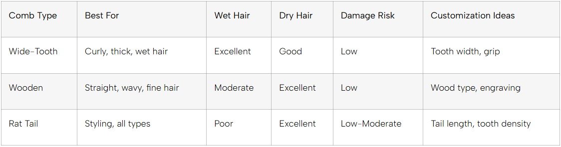 Finding the perfect hair comb isn’t just about style—it’s about keeping your Hair healthy, whether dripping wet from the shower or bone-dry after a blowout. Combs are gentler than brushes or accessories like claw clips, making them a go-to for women who want to detangle, smooth, or shape without breakage. The best one for you hinges on your hair type, how you use it (wet or dry), and whether you want a standard pick or something customized. Let’s dive into the top types—wide-tooth, wooden, and rat tail combs—and explore how they handle wet versus dry Hair and how customization can improve them.