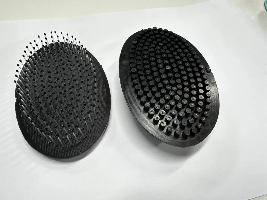 The cushion is usually a flexible rubber or elastomer pad seated in the brush head. It must hold bristles firmly while allowing a little give so the brush glides over the scalp. A poor attachment will lead to bristles popping out, loosened tufts or noisy brushes. Modern paddle brushes therefore use mechanical anchoring methods that avoid messy adhesives, allow efficient assembly, and withstand repeated use.