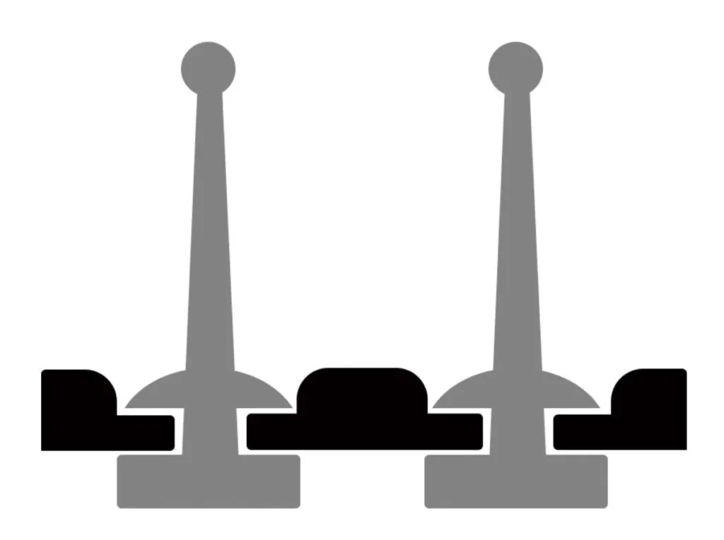 How bristles use it: for wooden pins, metal shafts or thick nylon pins, the bristle or the bristle’s molded base is integrally formed or fitted onto an I-shaped anchor. During assembly the anchor is pushed through a pre-cut round or slotted hole in the cushion until the lower flange snaps into place beneath the pad. The I shape locks the bristle vertically and resists pulling forces.