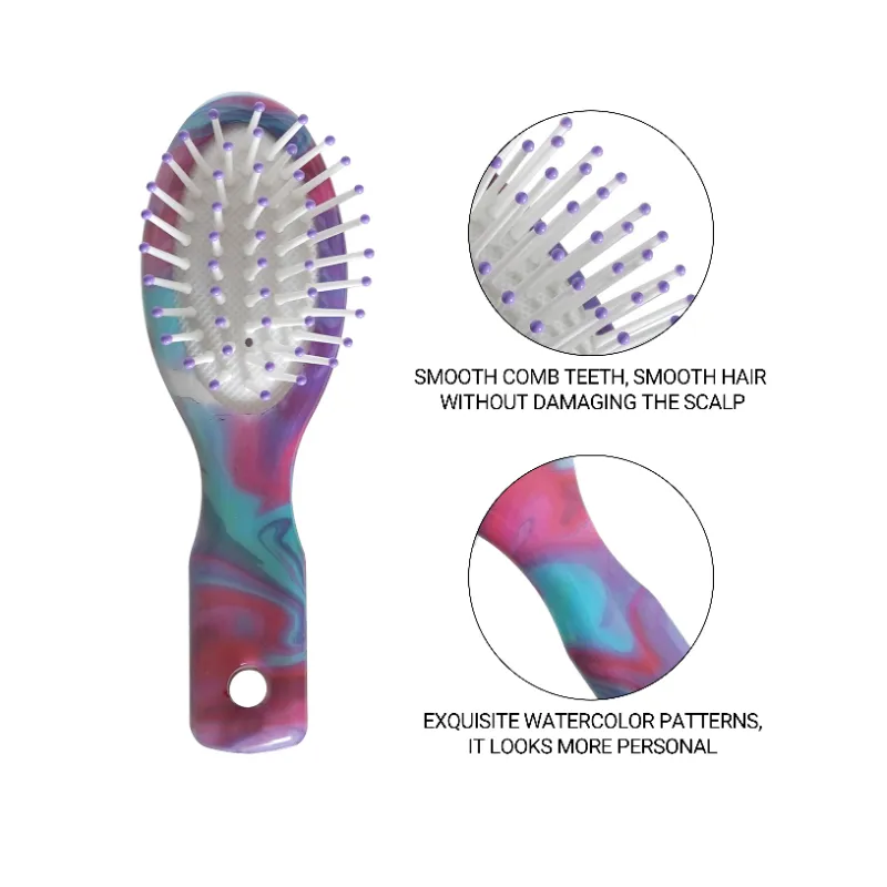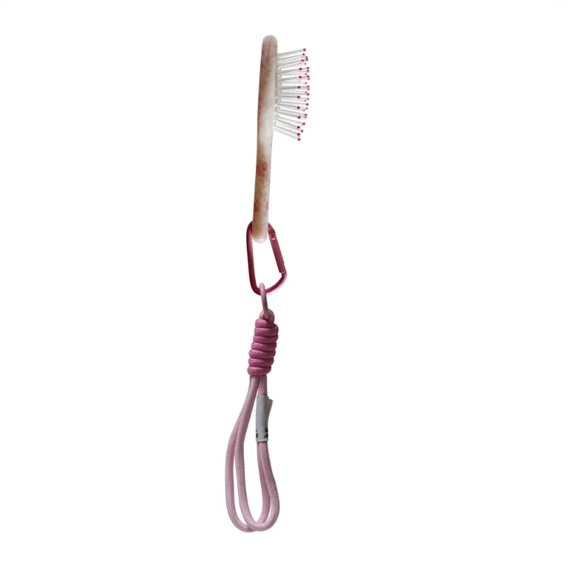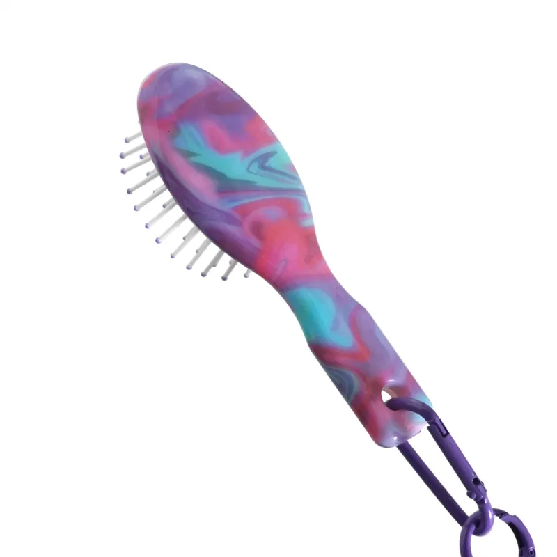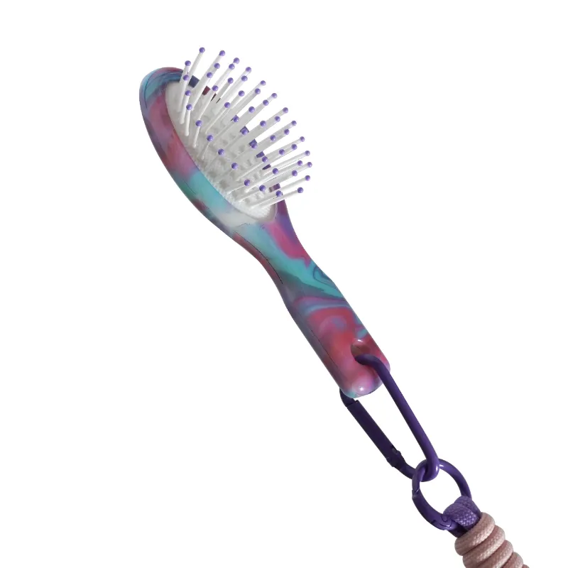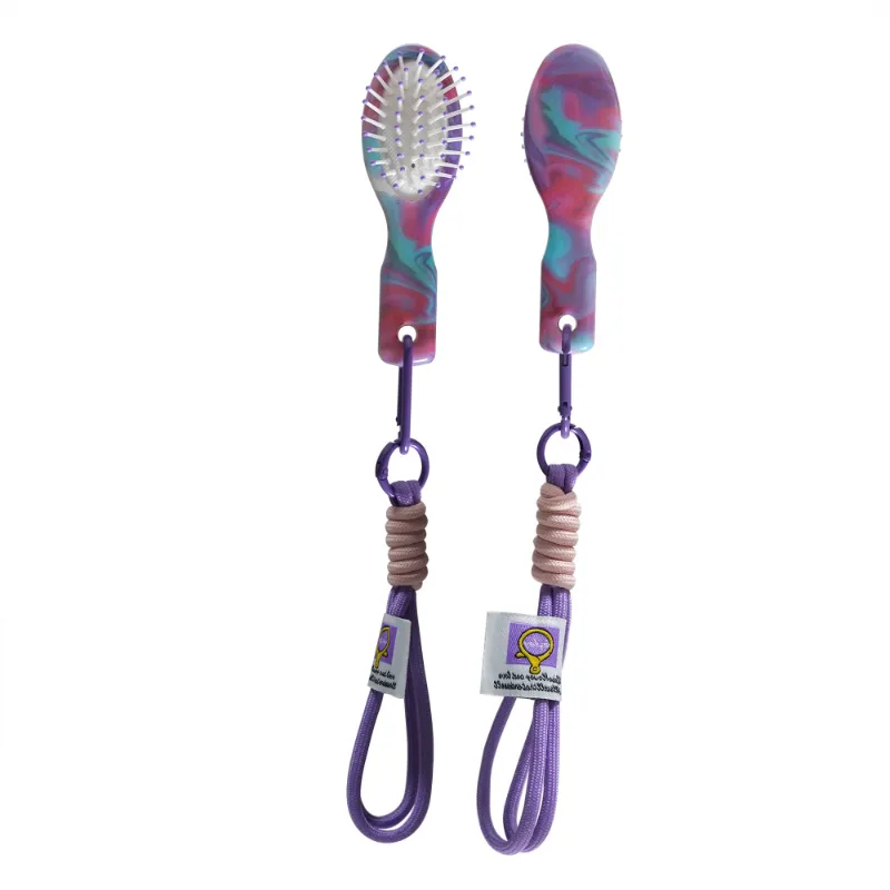 Enhance your hair care on the go with the Acetate Paddle Portable Brush with Resin-Tipped Bristles & Cord. This compact brush features a sleek acetate design, durable nylon bristles with epoxy resin-tipped ends for gentle detangling, a comfortable handle, and a convenient portable cord. Ideal for travel and everyday use.