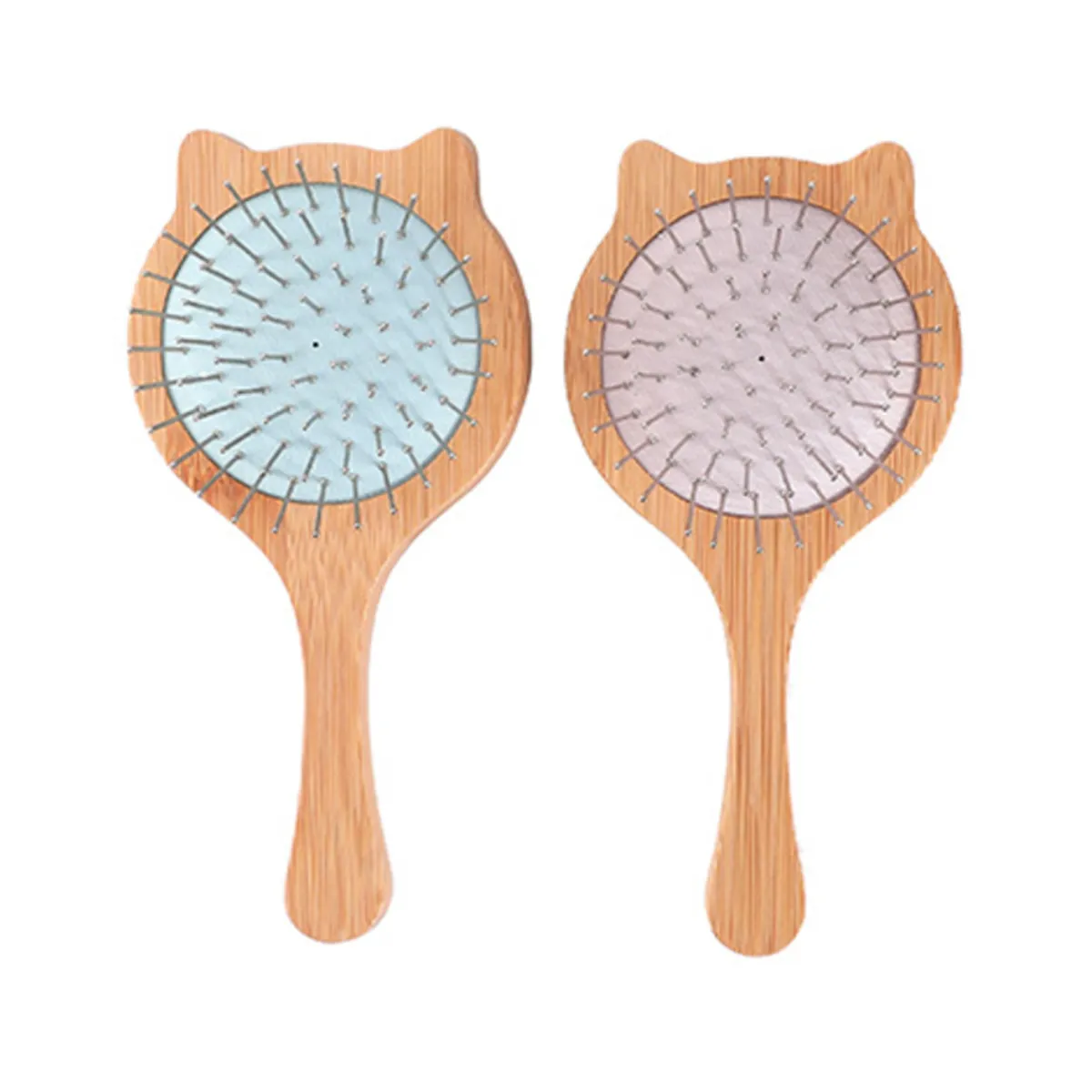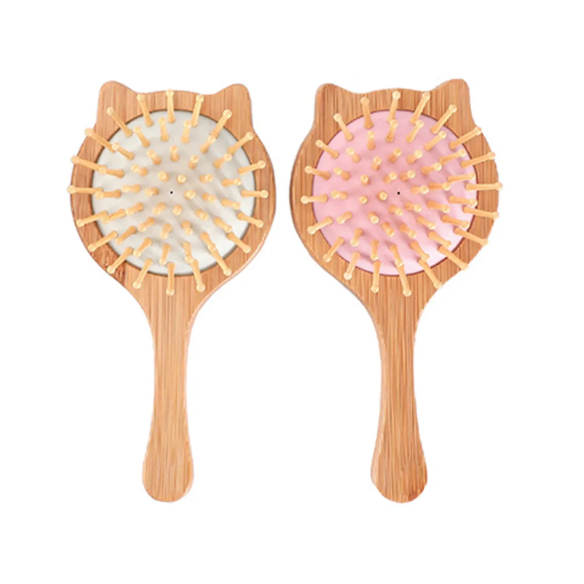 Bamboo Cat-Ear Paddle Hair Brush in Pastel Colors with Rounded Tooth Design