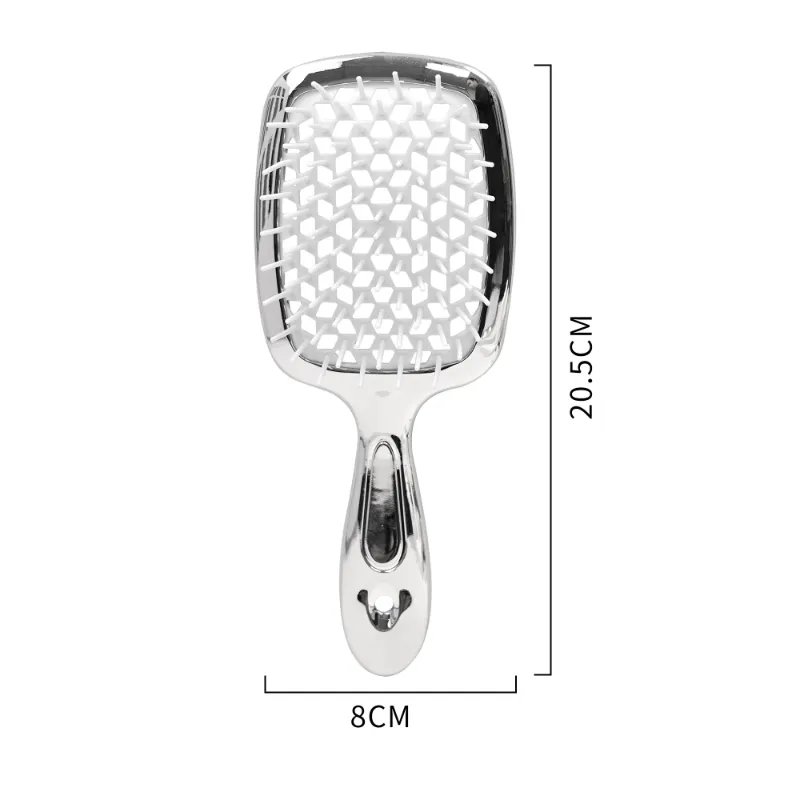 At JunYi Beauty, we’re passionate about creating hair care tools that reflect your personal style. With the ChromeGlow Detangling Hair Brushes with Honeycomb Cutout Design, you can customize the finish, cutout patterns, or even add engravings to create a one-of-a-kind piece that suits your taste. Whether you prefer the stunning silver ChromeGlow or a different metallic shade, our team is here to bring your vision to life. As a leader in hair care manufacturing, JunYi Beauty combines innovative design with premium quality, trusted by global brands. Contact us at JunYi Beauty to discuss your needs and discover why customers worldwide choose us for their hair care essentials!