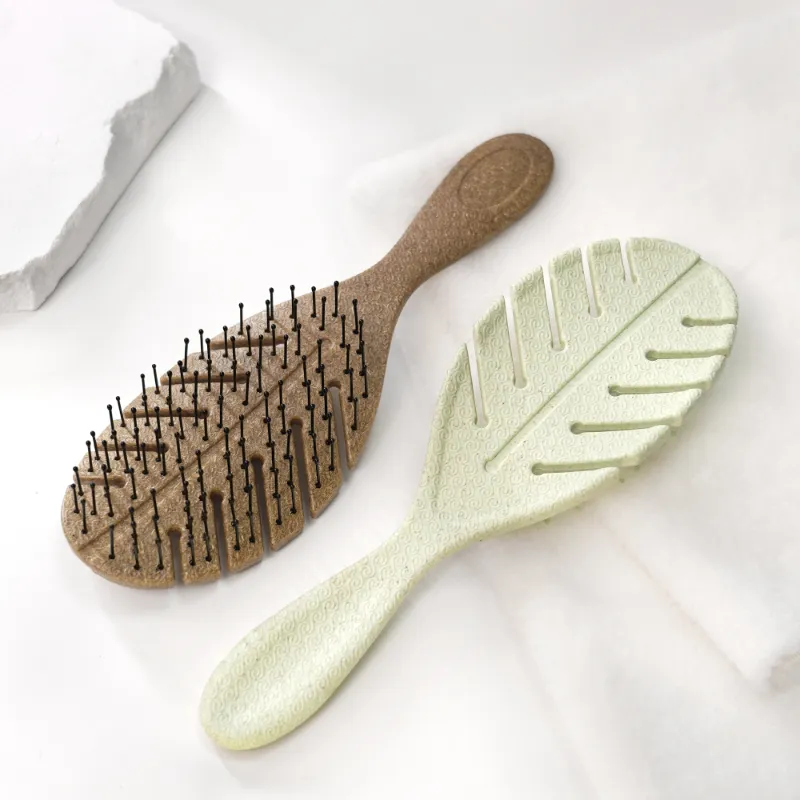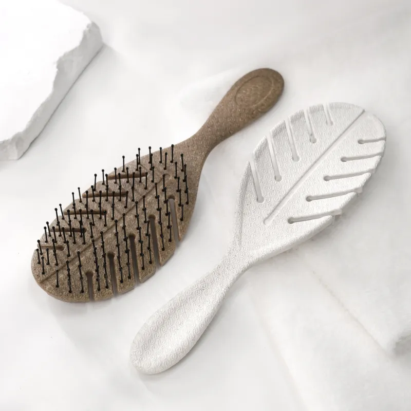 Discover the perfect blend of sustainability and style with the CocoShell Detangling Hair Brushes in Natural Tones with Leaf-Inspired Cutout Design, an eco-friendly tool designed for all hair types. Crafted from biodegradable coconut shell plastic, this detangling hair brush features a cushioned head with flexible bristles that glide through knots effortlessly, ensuring gentle detangling while promoting scalp health. Available in natural tones of earthy brown and crisp white, the brush showcases a leaf-inspired cutout design on its body, adding a touch of nature-inspired elegance while reducing weight for a comfortable grip. Perfect for both wet and dry hair, this brush combines eco-conscious materials with a functional, nature-inspired aesthetic. For a personalized touch, we offer customization options—choose your preferred colors or add your brand logo to make this brush uniquely yours!