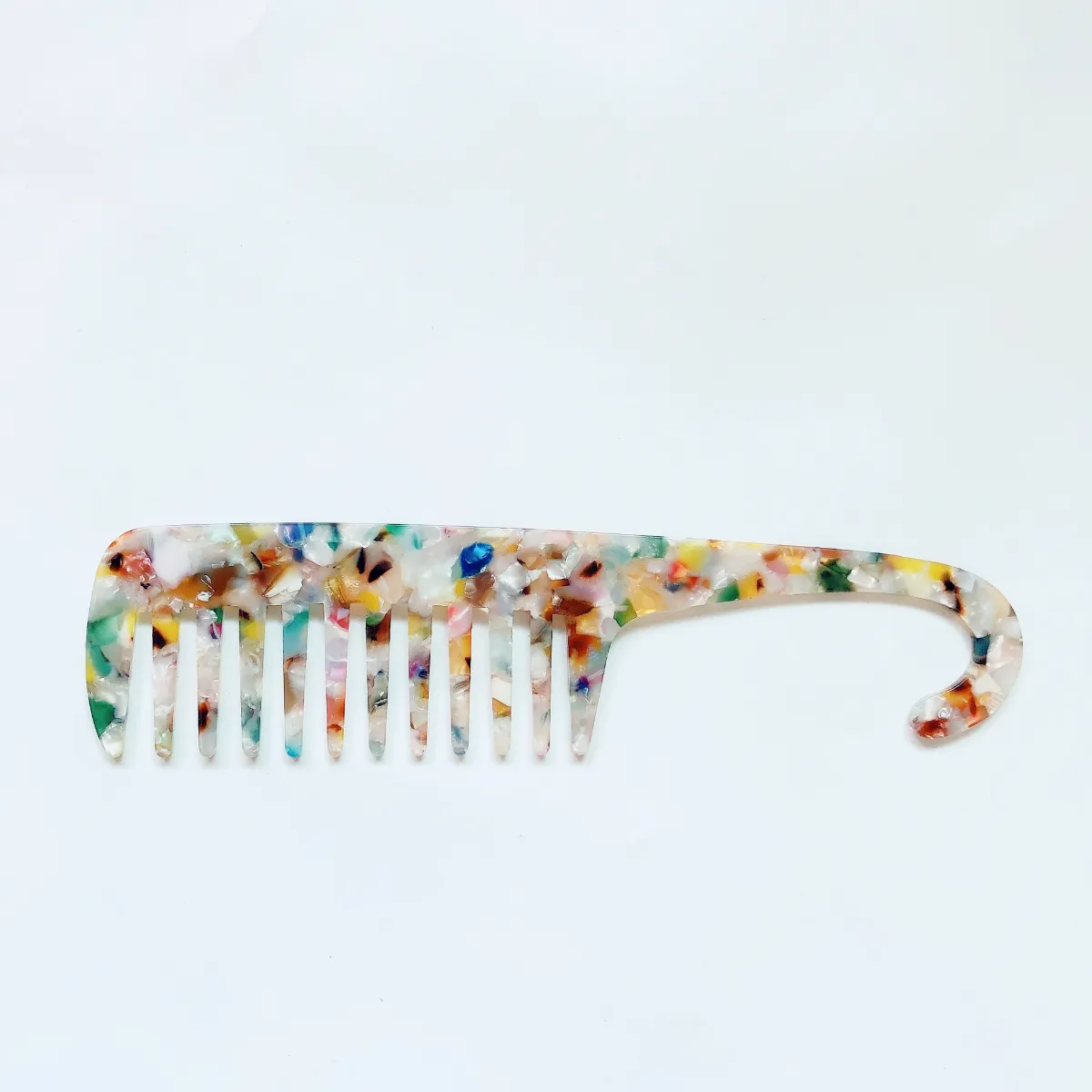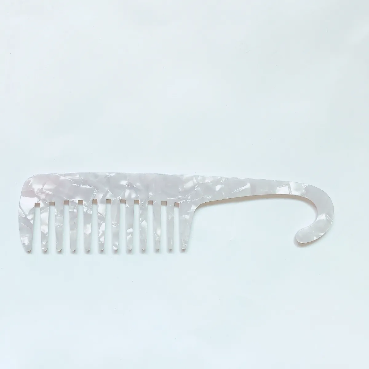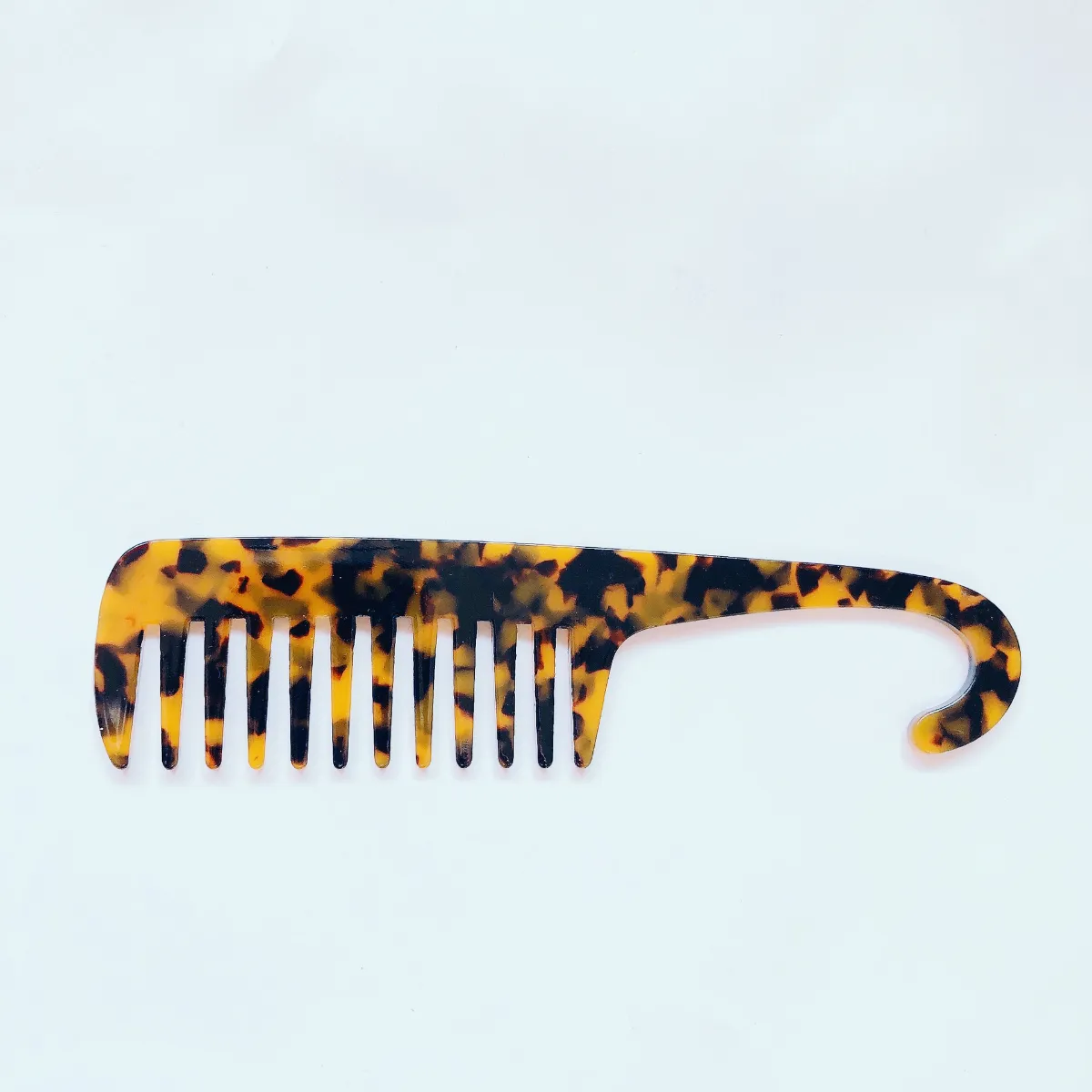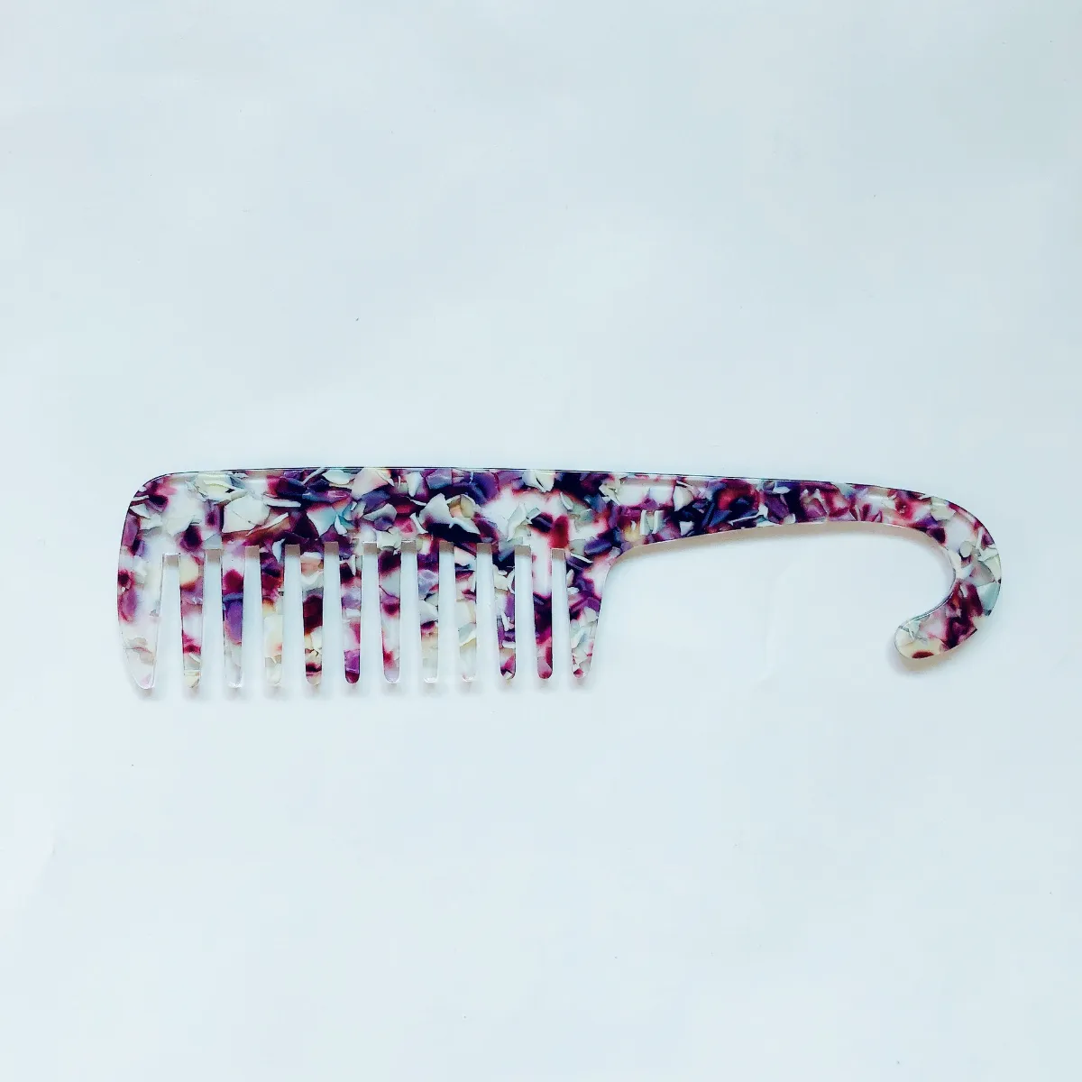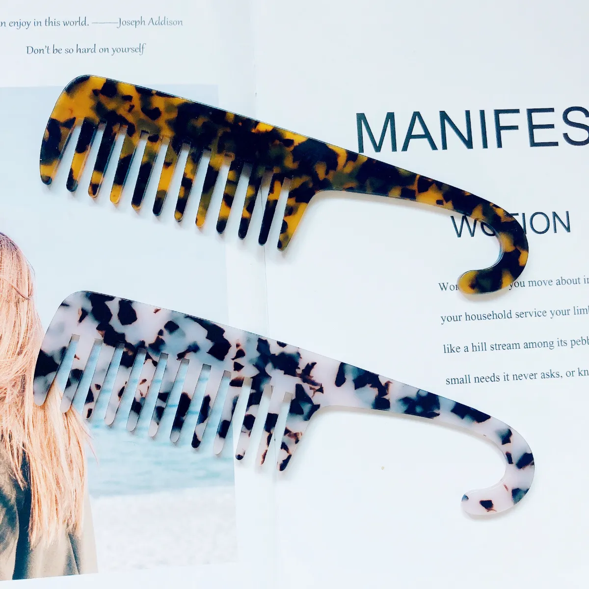 Add a pop of color to your hair care routine with the Customizable Colorful Acetate Wide-Tooth Detangling Comb with Hook for Wet and Dry Hair. Crafted from eco-friendly acetate, this comb boasts vibrant tortoiseshell patterns in shades like blue, pink, and orange. Its wide-tooth design gently detangles wet or dry hair, minimizing breakage for all hair types. The built-in hook at the handle’s end allows for easy storage, while the lightweight build ensures a comfortable grip. Customize the color or add your logo to make it yours!