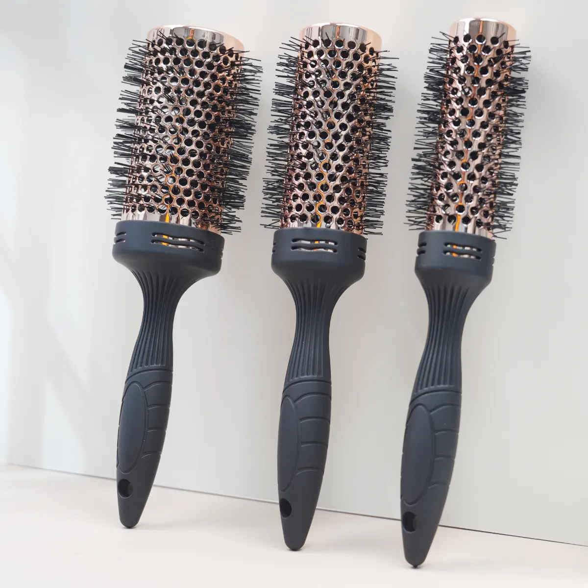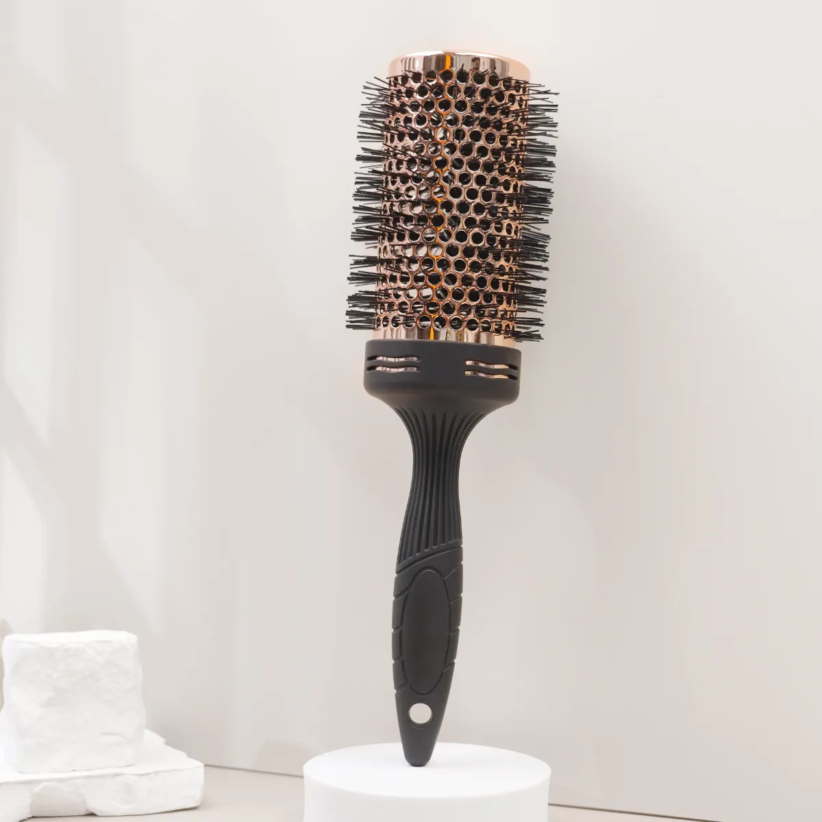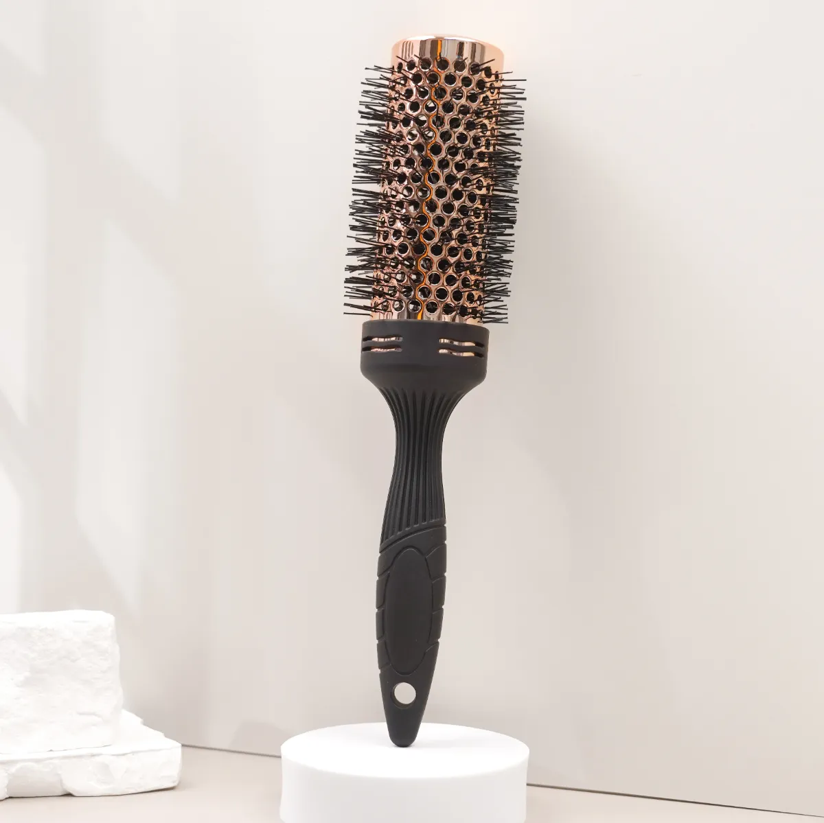 With the rubber handle included, this prioritizes comfort during use and includes the ability to customize size and shape of the handle, allowing you to select either single, two or three part. Its nylon comb-teeth provide easy detangling and can be used on all kinds of hair textures and types. You can choose among custom bristles with pig bristle, epoxy resin, or wooden bristles, depending on your desired results. This round brush is equipped with anti-static properties, so you can use it on wet or dry hair and enjoy smoother, shinier results every time you use it. No matter whether you’re using it for blow drying or everyday styling, this brush will have you covered. With JUNYI BEAUTY’s customization options, you’re guaranteed to get a high performance tool built to your exact needs.