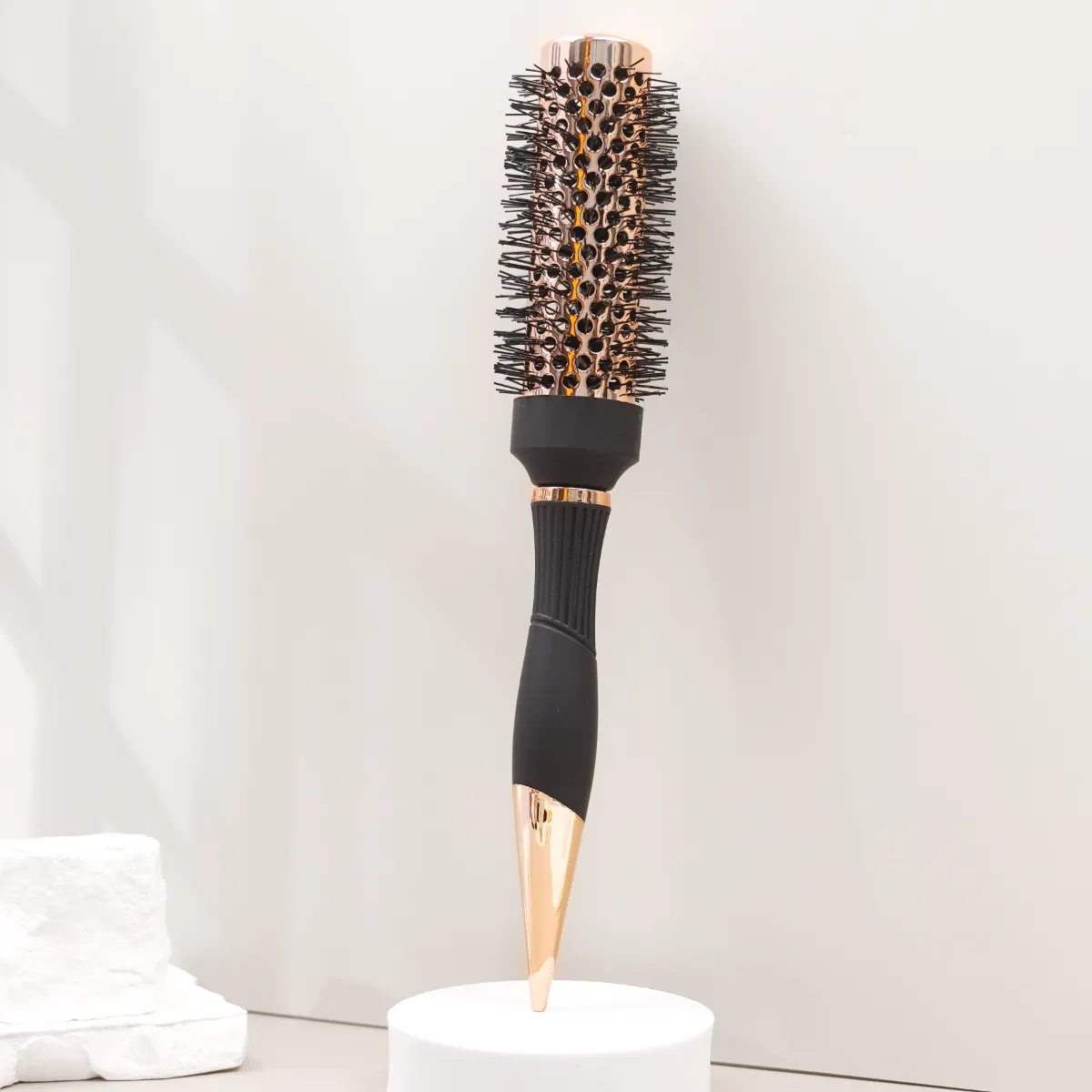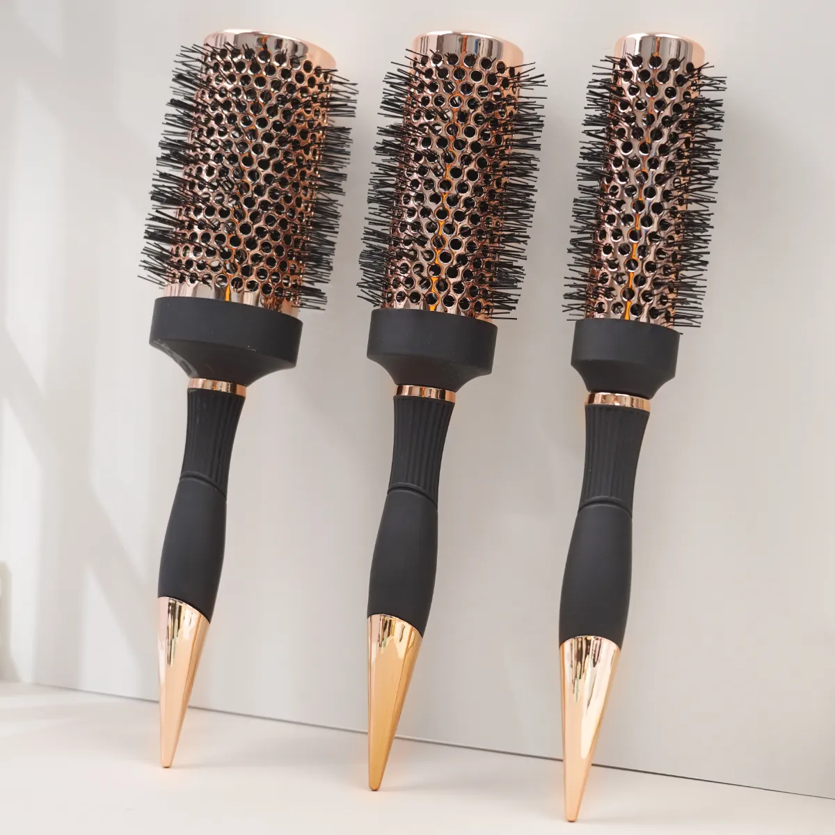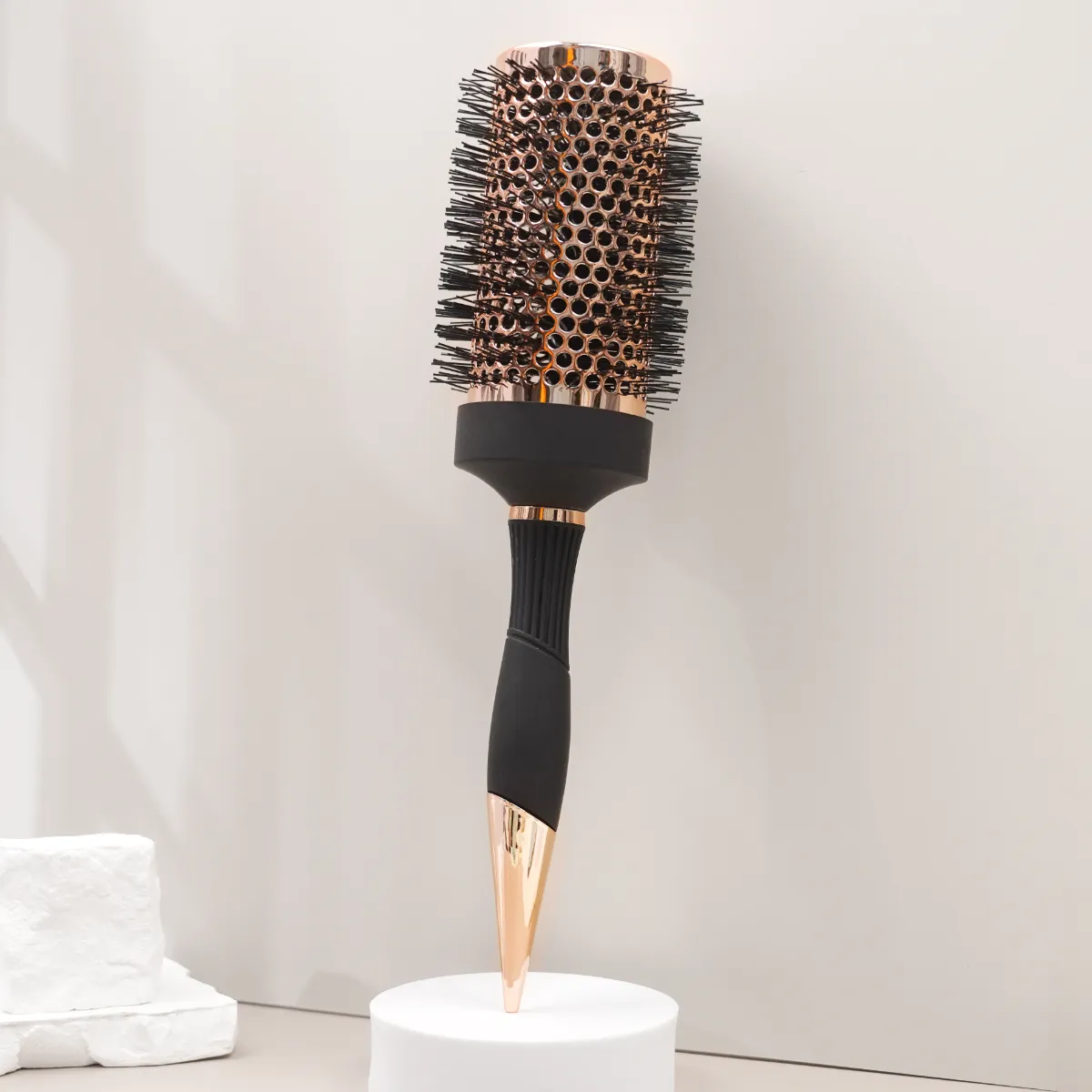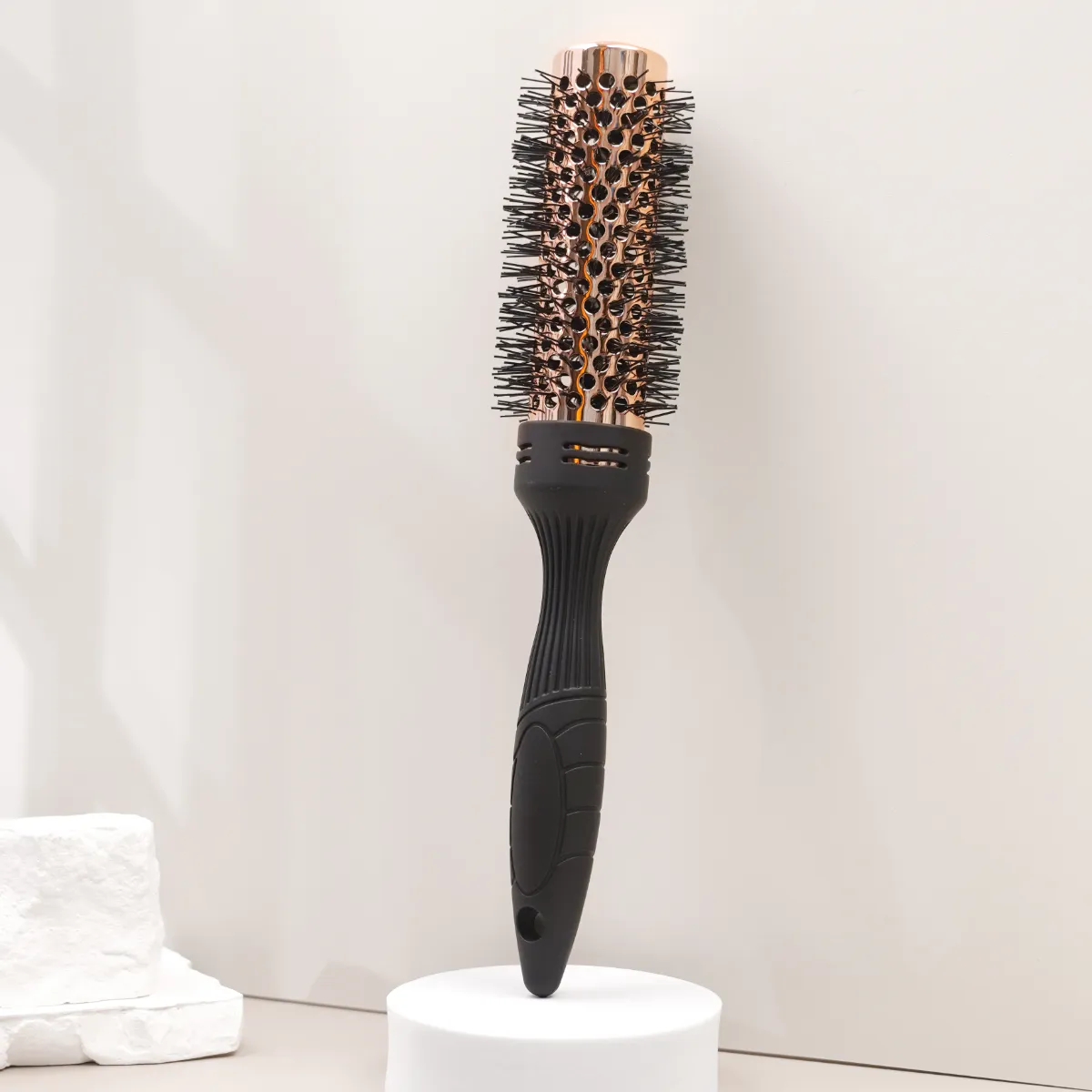 With the rubber handle included, this prioritizes comfort during use and includes the ability to customize size and shape of the handle, allowing you to select either single, two or three part. Its nylon comb-teeth provide easy detangling and can be used on all kinds of hair textures and types. You can choose among custom bristles with pig bristle, epoxy resin, or wooden bristles, depending on your desired results. This round brush is equipped with anti-static properties, so you can use it on wet or dry hair and enjoy smoother, shinier results every time you use it. No matter whether you’re using it for blow drying or everyday styling, this brush will have you covered. With JUNYI BEAUTY’s customization options, you’re guaranteed to get a high performance tool built to your exact needs.