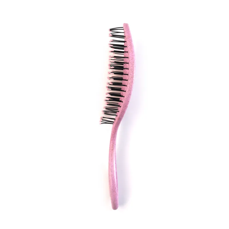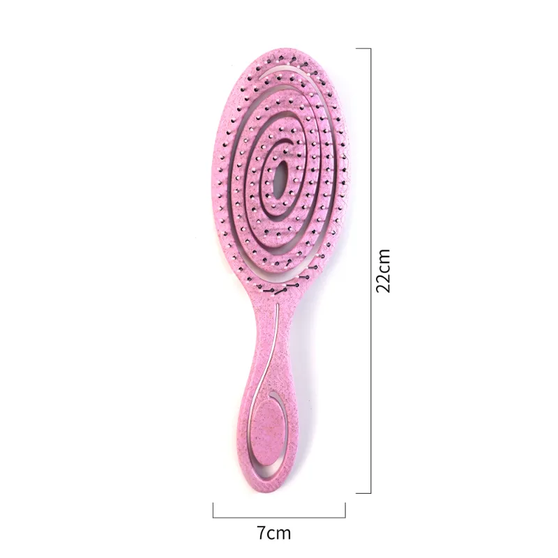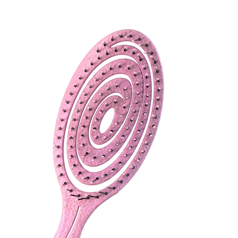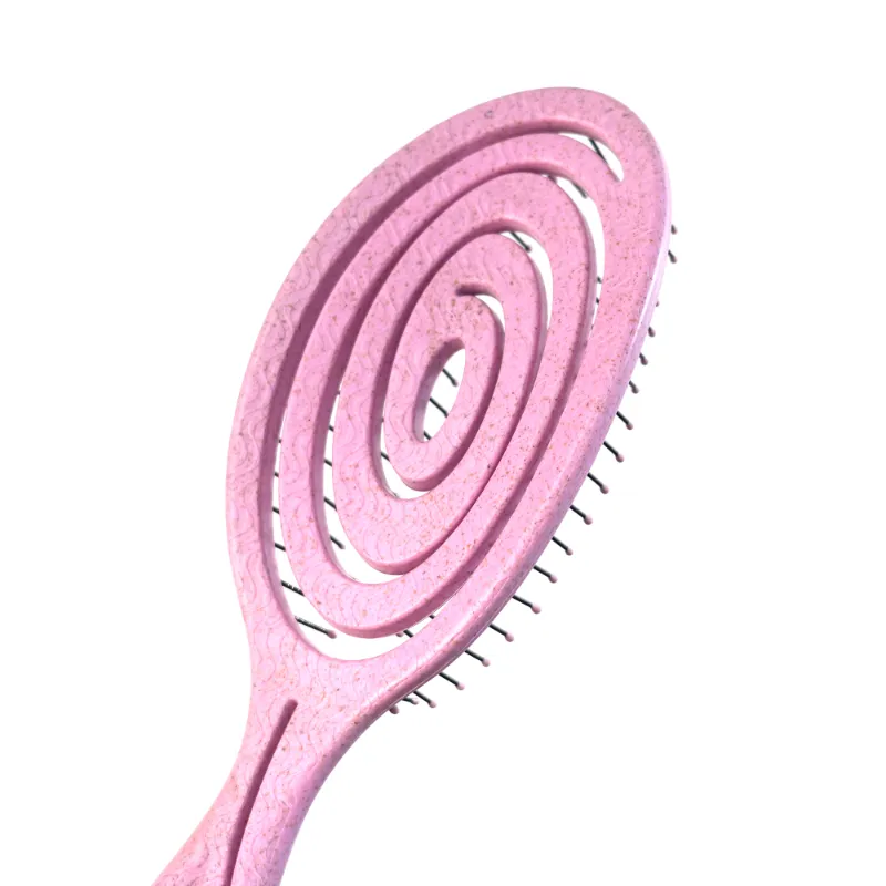 Embrace sustainable beauty with the EcoStraw Detangling Hair Brushes in Blush Pink with Spiral Cutout Design, an eco-friendly tool designed for all hair types. Crafted from biodegradable wheat straw, this detangling hair brush features a cushioned head with flexible bristles that glide through knots effortlessly, ensuring gentle detangling while promoting scalp health. The blush pink finish adds a soft, feminine touch, while the spiral cutout design on the brush body enhances its aesthetic appeal and reduces weight for a comfortable grip. Perfect for both wet and dry hair, this brush combines eco-conscious materials with a stylish, functional design. For a personalized touch, we offer customization options—choose your preferred colors or add your brand logo to make this brush uniquely yours!