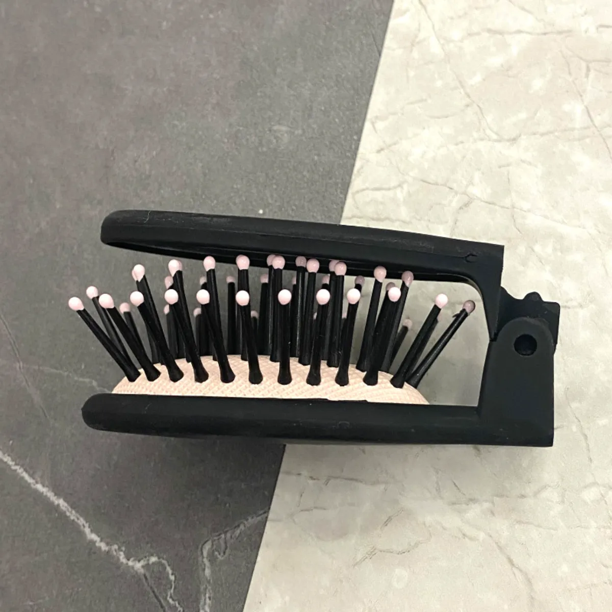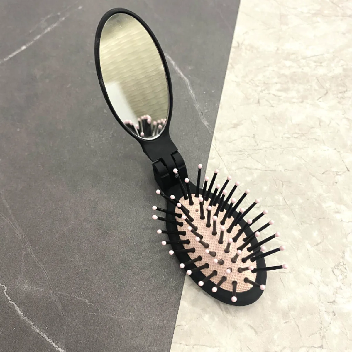 Groom effortlessly with the Folding Air Cushion Hair Brush with Mirror in Black. Measuring 6.5cm by 4.5cm, this compact brush features a foldable design with an air cushion base and soft bristles to gently detangle and massage the scalp. The built-in mirror adds convenience for on-the-go touch-ups. Customize the color or add your logo to make it yours!