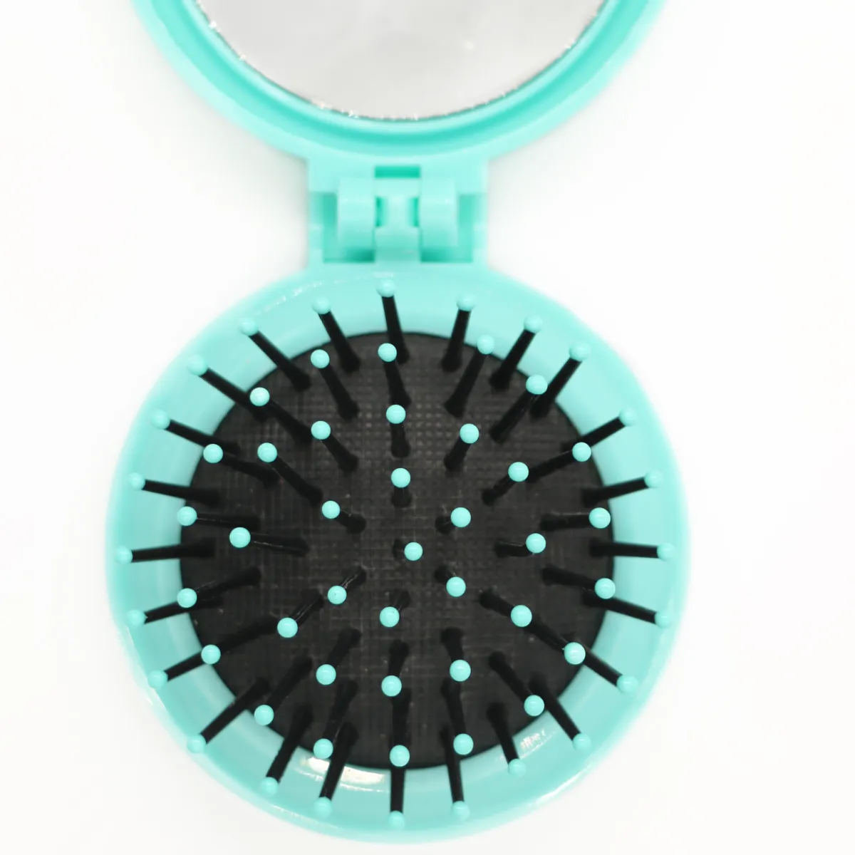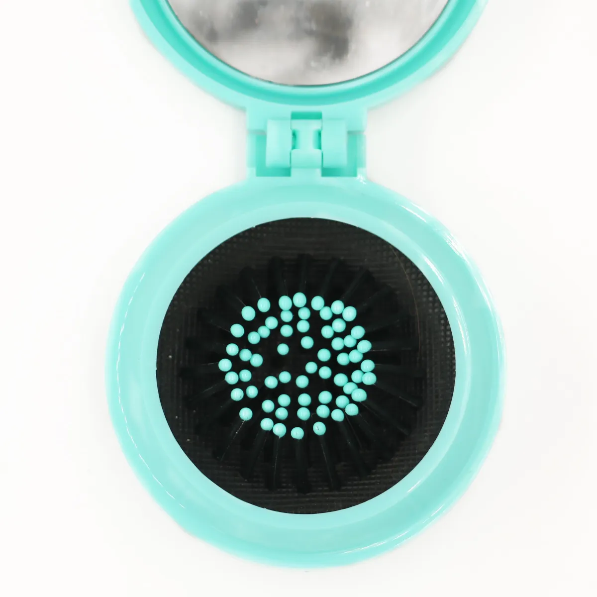 Groom with ease using the Folding Air Cushion Hair Brush with Mirror in Cyan. Measuring 7.5cm by 6.5cm, this compact brush features a foldable design with an air cushion base and soft bristles to gently detangle and massage the scalp. The built-in mirror and sparkling bead design add a touch of style for on-the-go use. Customize the color or add your logo to make it yours!