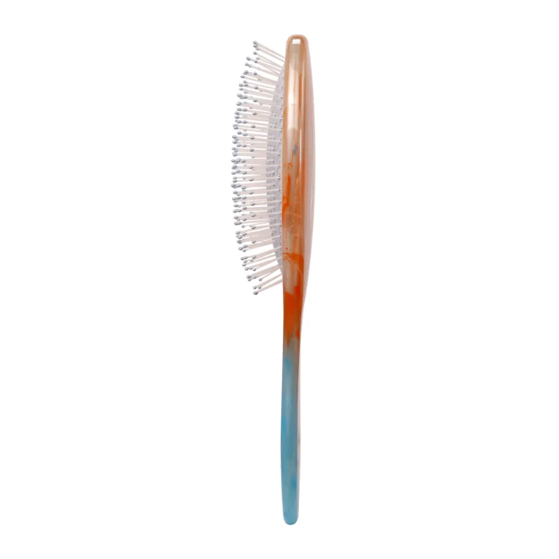 Experience a blend of artistry and functionality with the Gradient Color Oval Acetate Paddle Hair Brush, designed in a sleek elliptical shape for a modern, sophisticated style. This brush features a vibrant colorful gradient acetate body, adding a dynamic, artistic flair that evokes a sense of fluid motion and contemporary elegance. Equipped with fine nylon bristles for gentle detangling and smoothing, it’s perfect for all hair types, offering a lightweight feel and ergonomic grip for effortless styling.