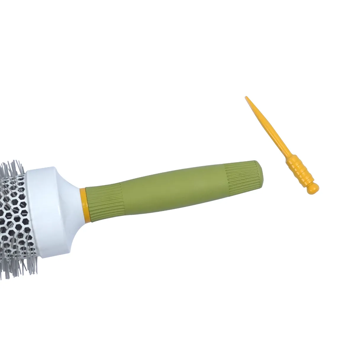 Style effortlessly with the Green Handle White Vented Barrel Round Brush with Detachable Yellow Cleaning Pin. Measuring 27cm long with a 6cm barrel diameter, this brush features a white vented barrel for faster drying and smooth styling. The bristles gently detangle and add volume, perfect for all hair types. The detachable yellow cleaning pin at the handle’s end simplifies maintenance, while the ergonomic green handle ensures a comfortable grip. Customize the handle color or add your logo to make it yours!