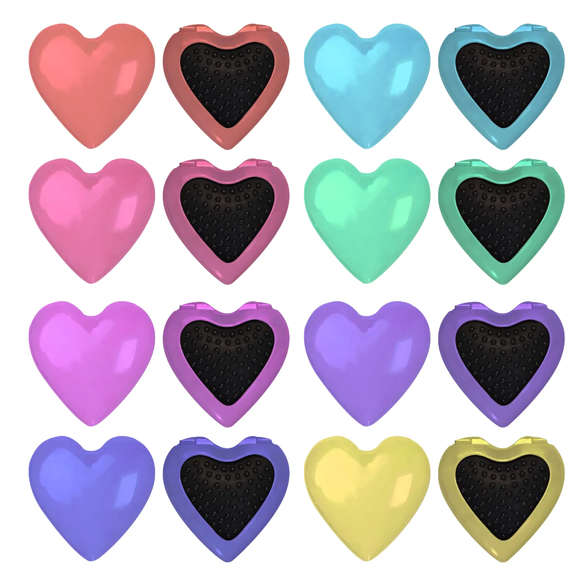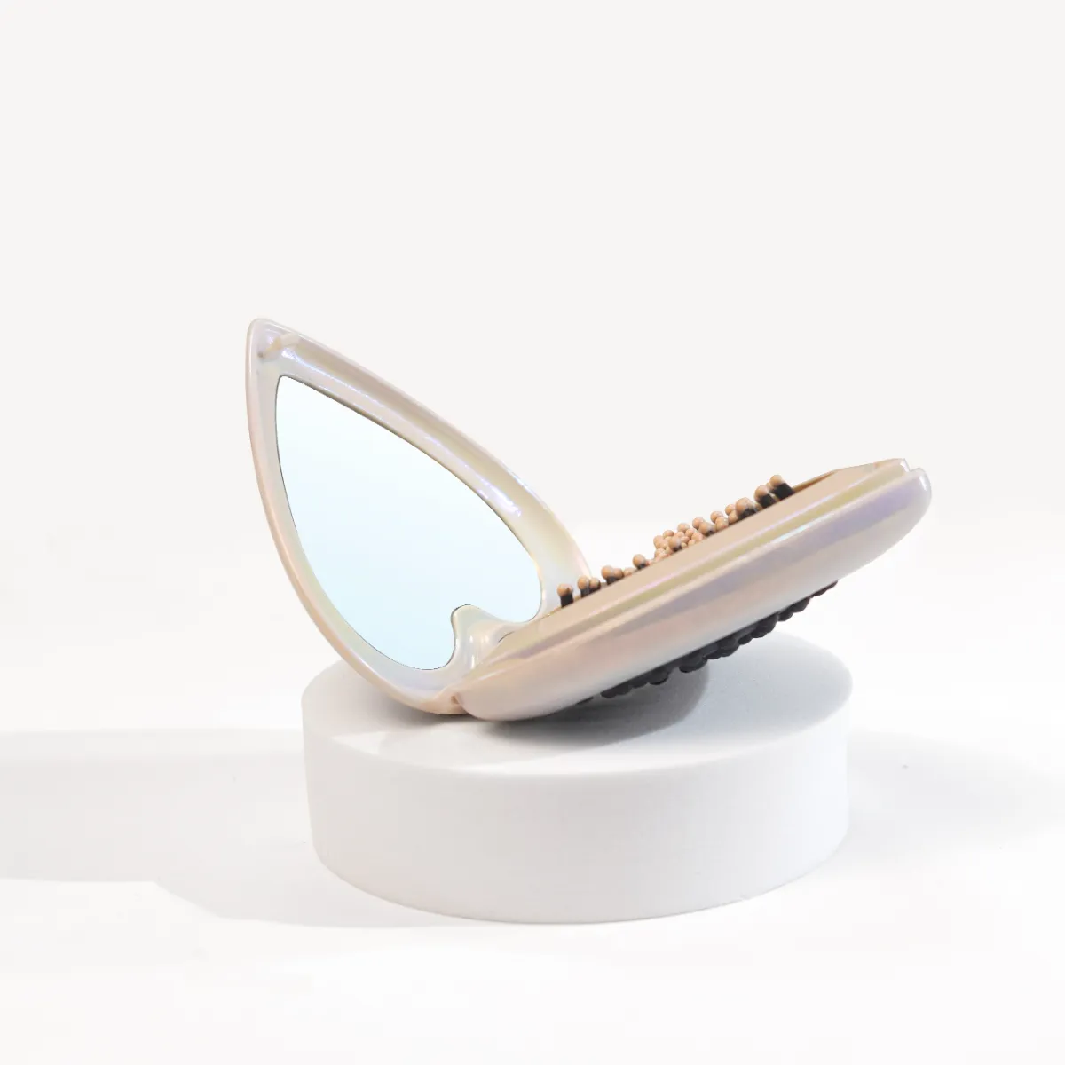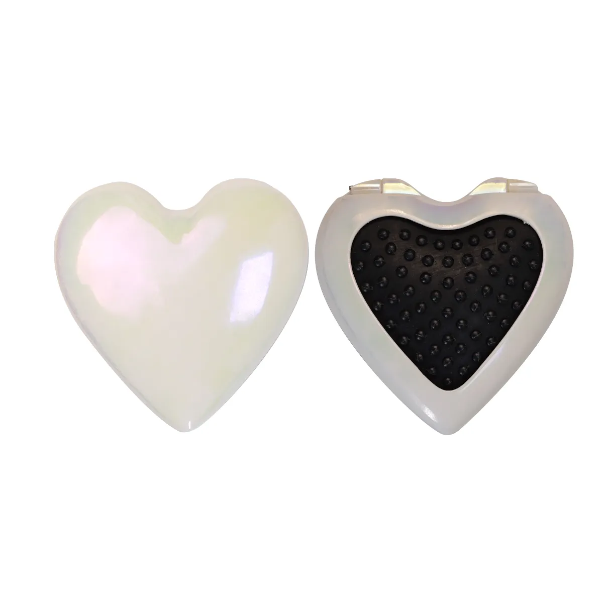 Groom on the go with the Heart-Shaped Folding Hair Brush with Mirror in Iridescent Finish. Measuring 8cm by 8cm, this compact brush features a heart-shaped design with a stunning iridescent finish, perfect for all hair types. The built-in mirror and foldable design make it ideal for travel, while the soft bristles gently detangle and massage the scalp. Customize the finish or add your logo to make it yours!