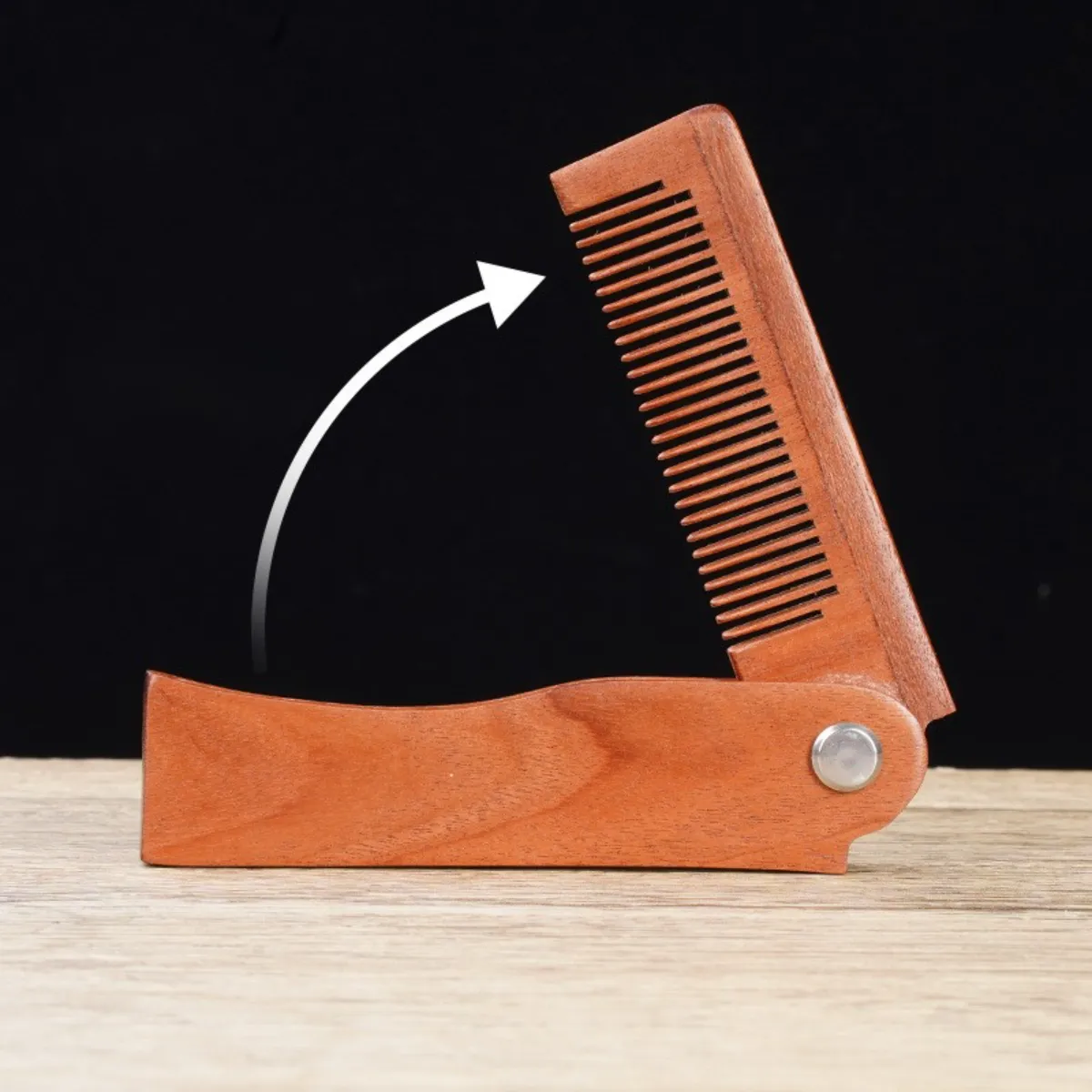 Groom effortlessly with the Portable Folding Rosewood Hair and Beard Pocket Comb. Crafted from premium rosewood, this foldable comb measures 18cm and is perfect for both hair and beard care, offering a smooth and gentle grooming experience. Its compact design fits easily in your pocket for on-the-go use. Customize the finish or add your logo to make it yours!