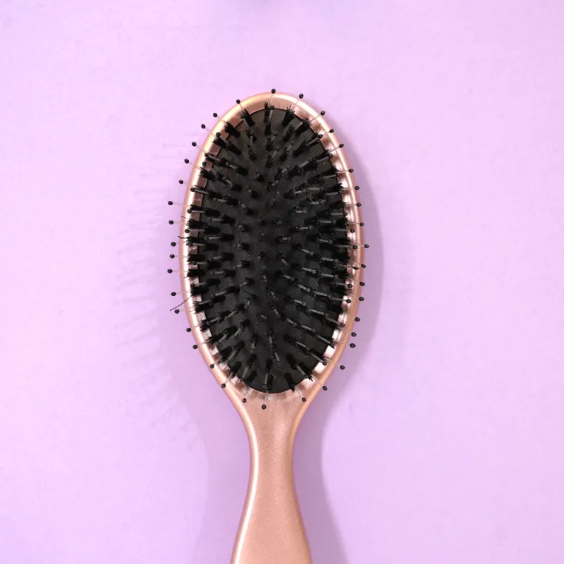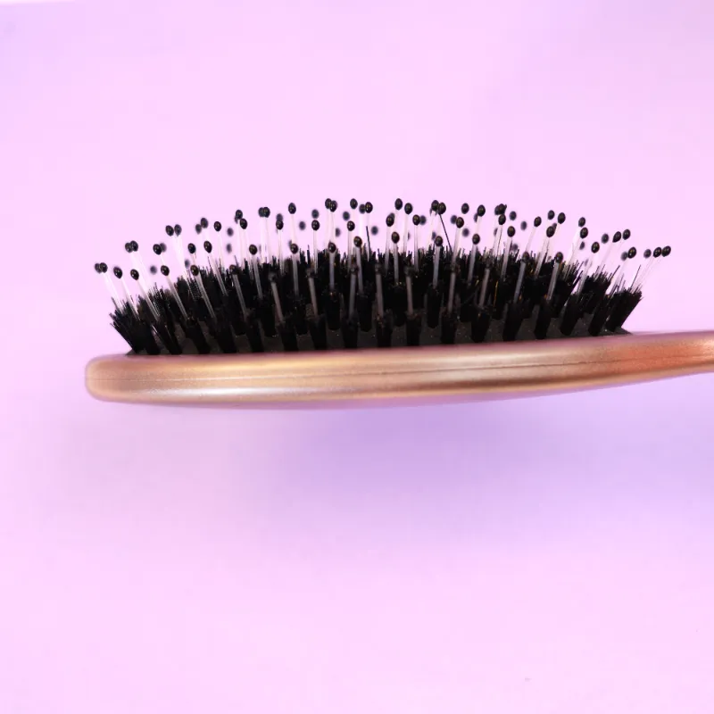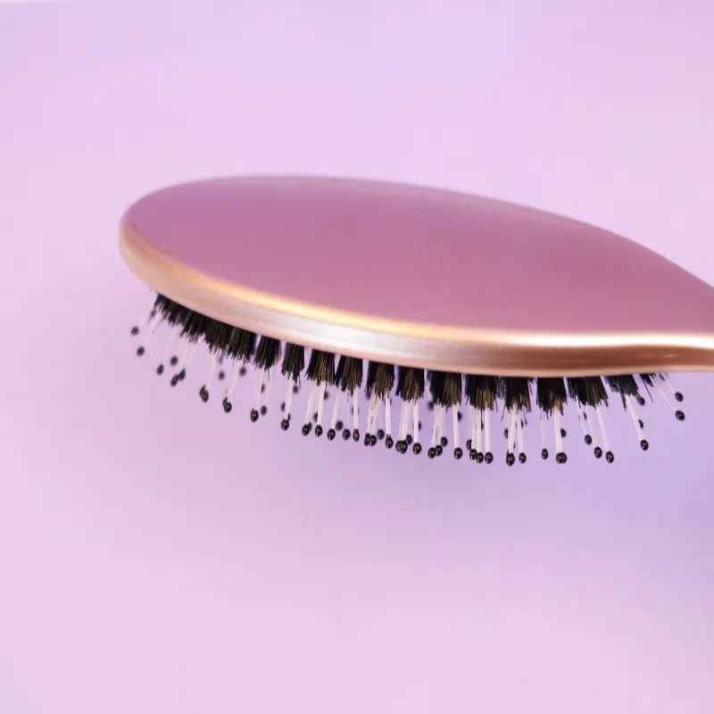 Upgrade your hair care routine with the Rose Gold Electroplated Mixed Bristle Paddle Hair Brush, a luxurious tool designed for all hair types. This paddle brush features a wide, cushioned head with a unique combination of boar and nylon bristles, offering gentle detangling while distributing natural oils for a smooth, shiny finish. The elegant rose gold electroplated finish, achieved through advanced electroplating technology, provides a stunning mirror-like shine, blending durability with a sophisticated aesthetic. Perfect for both wet and dry hair, this brush promotes scalp health and reduces breakage. For a personalized touch, we offer customization options—choose your preferred electroplated shades or add your brand logo to make this brush uniquely yours!